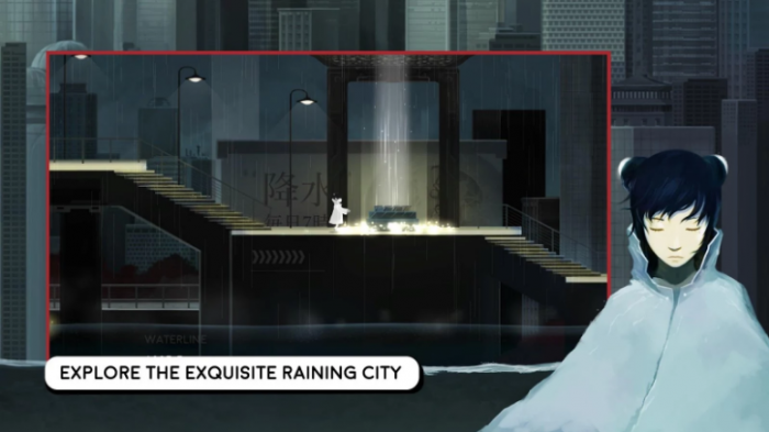 Una desconcertante joven con un impermeable llega a la ciudad sumergida por la lluvia. Bajo la lluvia y salva la ciudad iluminando los postes de luz y de piedra con su poca luz disponible. Serás la desconcertante joven en esta aventura. Descubre quién es realmente como la lluvia en la ciudad se reduce paso a paso.